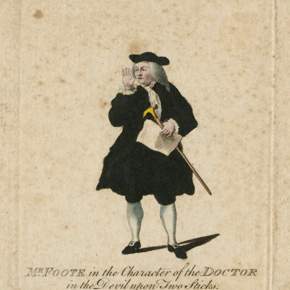 Mr. Foote in the character of the Doctor in The devil upon two sticks. London, England : Printed for J. Smith at no. 35 Cheapside & R. Sayer at no. 53 Fleet Street,  © Folger Shakespeare Library Digital Image Collection