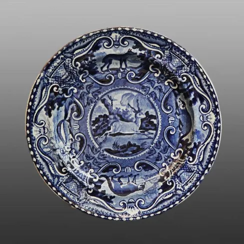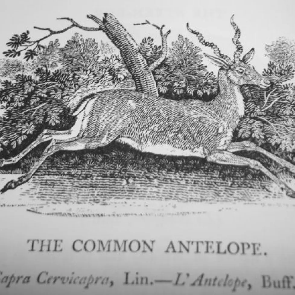 The source print for the center pattern is copied from The General History of Quadrupeds by Thomas Bewick, 1790. The wood block engraving is also by Thomas Bewick.Shape Type