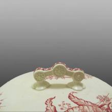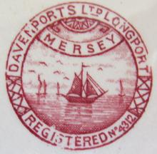 Chamber pot lid, earthenware with "Eldon" shape handle, transfer printed in burgundy with the named pattern Mersey, design number 4312, registered in 1884. Davenports became a limited company in the last years of operation.BACK TO CATALOG INDEX