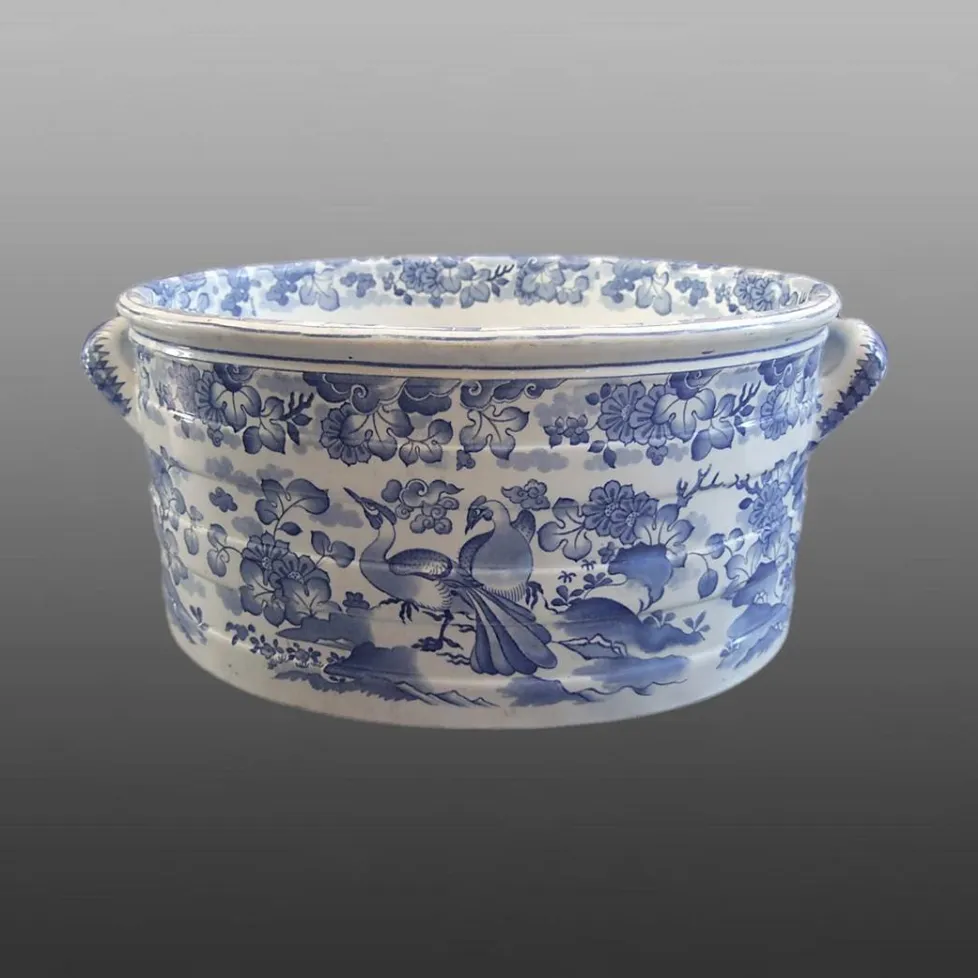 Also shown here is a small earthenware ewer printed in blue in the Old Peacock pattern.Shape Type