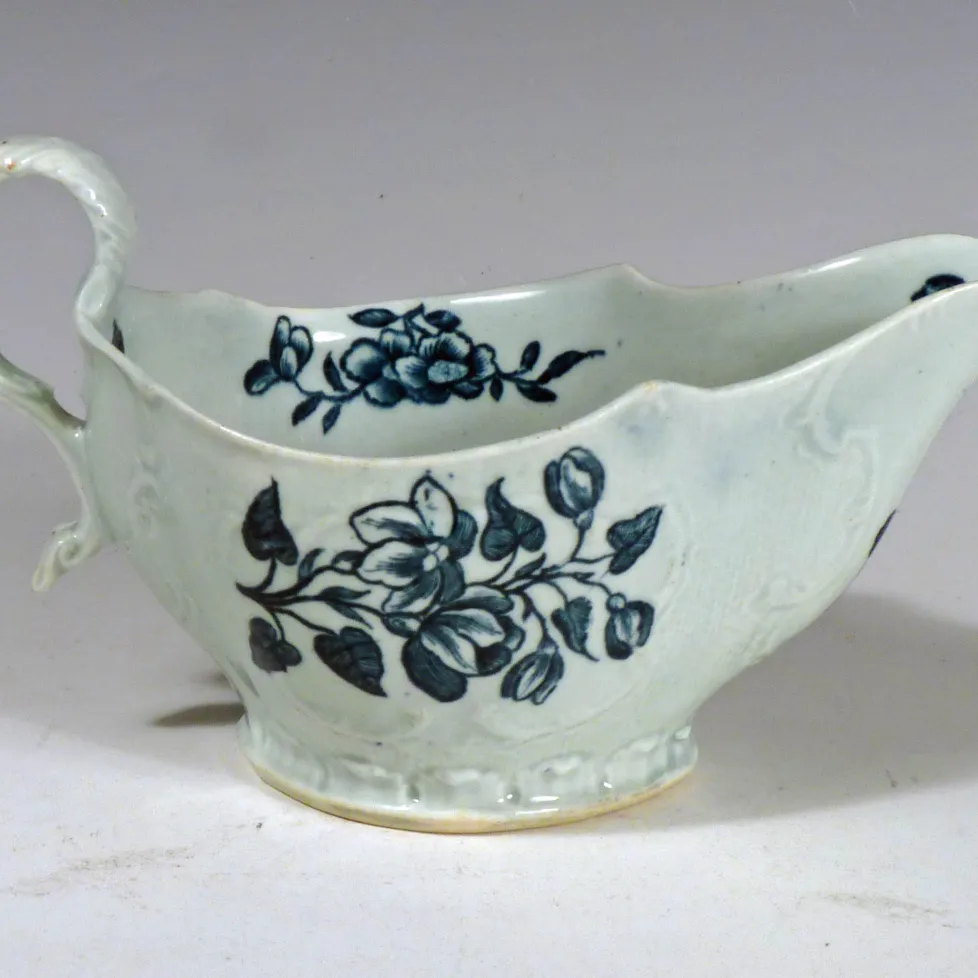 The other side of the sauceboat bears another well-printed spray from the Early Floral Sprays group.