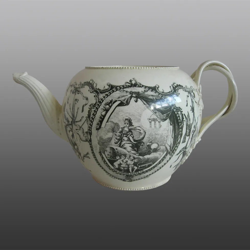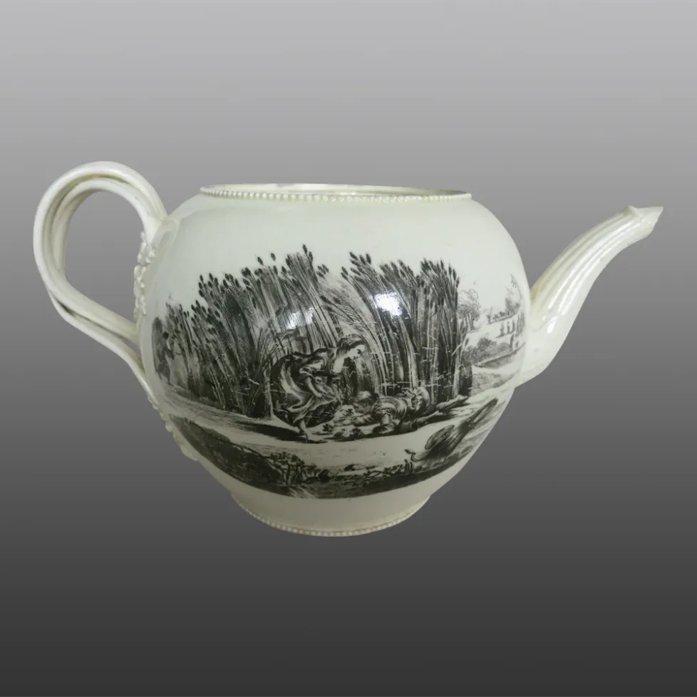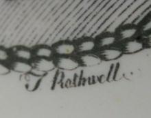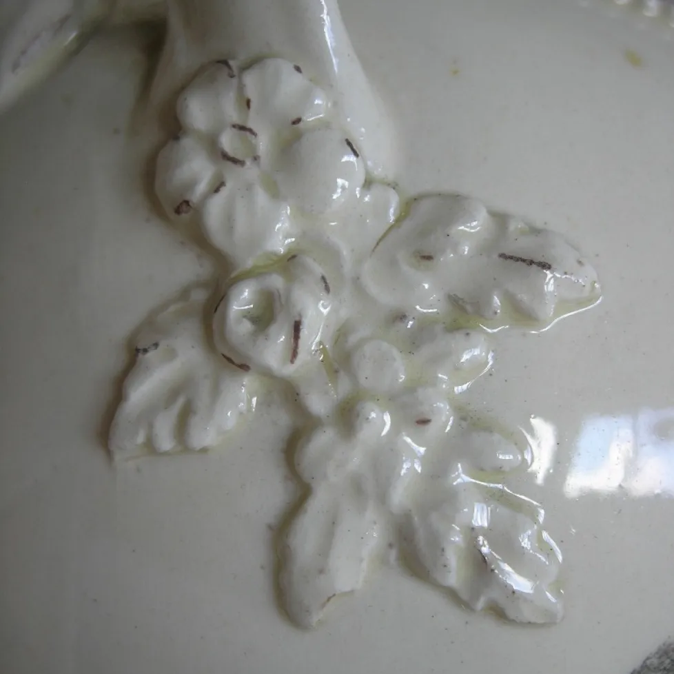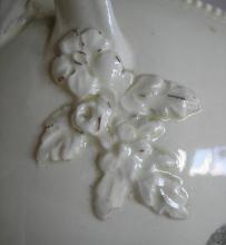 One of the four applied terminals on the entwined double handle. Does this precise form of terminal occur on pots marked by Palmer or his partner and successor Neale?