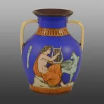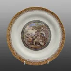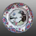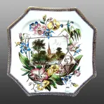 The items included in this section exhibit an extraordinary variety of wares achieved by combining printing and painting techniques. Included are examples of printing with painting-in underglaze, examples of printing underglaze and enameling overglaze, as well as a combination of both. Both porcelain and earthenware bodies can be found in this section. In each example, the printing and painting techniques are described.