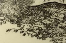 Front of the jug showing the print of the Royal Coat of Arms. The engraving is signed within the etched foliage beneath the motto ribbon slightly to the left of center. The inscription is in reverse and reads "T. Dixon Scupt 1803", Thomas Dixon was an engraver known to have been working in Liverpool from 1806 to 1816 perhaps this is the first documentary evidence of his working there somewhat earlier.