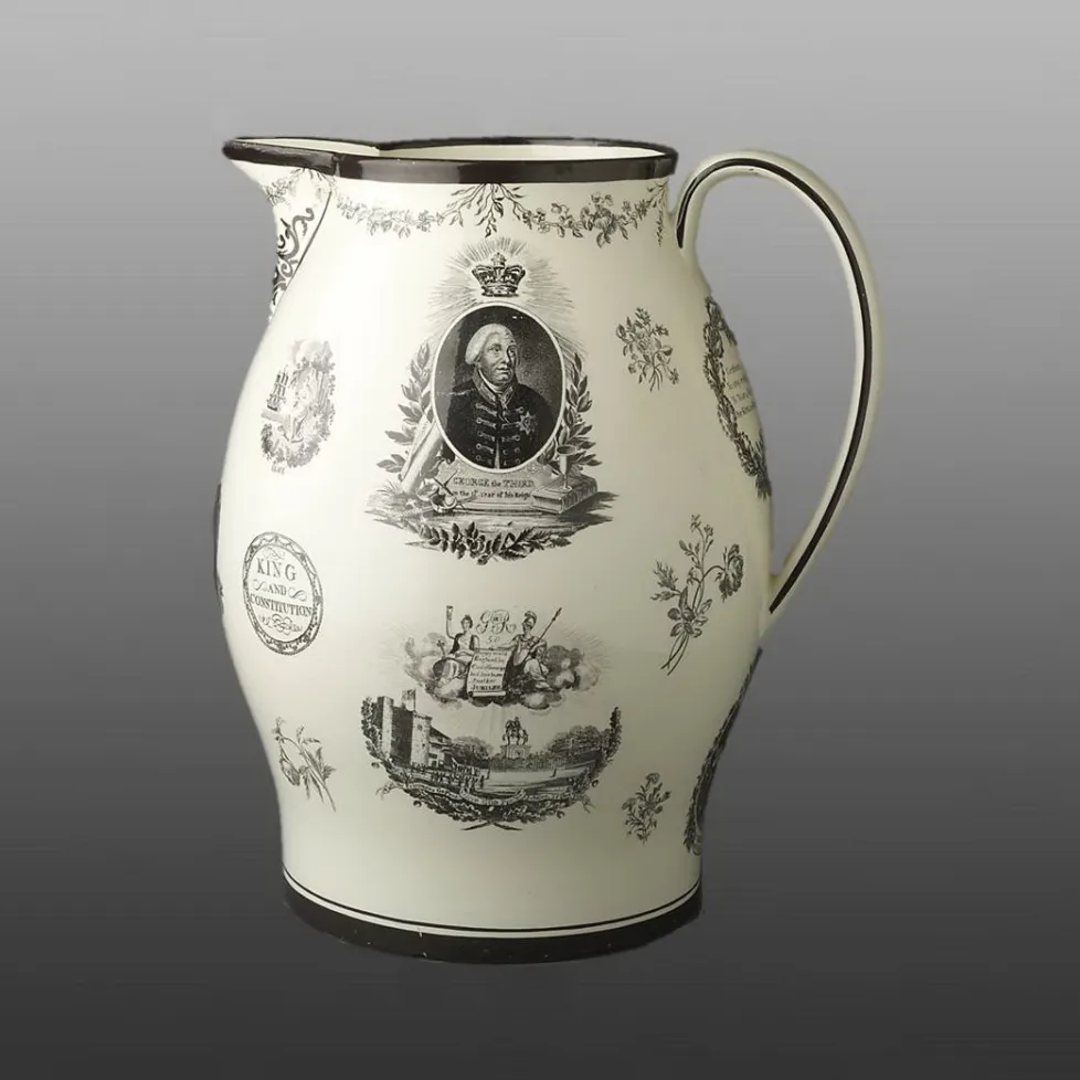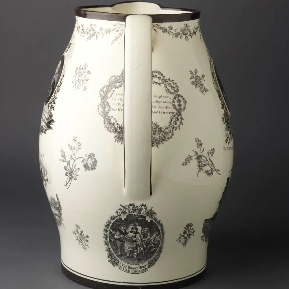 On the handle side of the jug is a a wreath conating a patriotic toast to King and Country, and beneath the handle is a small print entitled "O THE ROAST BEEF OF OLD ENGLAND", perhaps referring to the popular patriotic song of that time.Shape Type