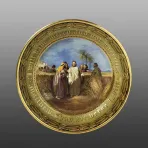 Printed designs were frequently derived from literary, religious, classical, and mythological sources. Factories often relied on engraved prints and paintings to create their patterns. When available, source prints are included in this exhibit.