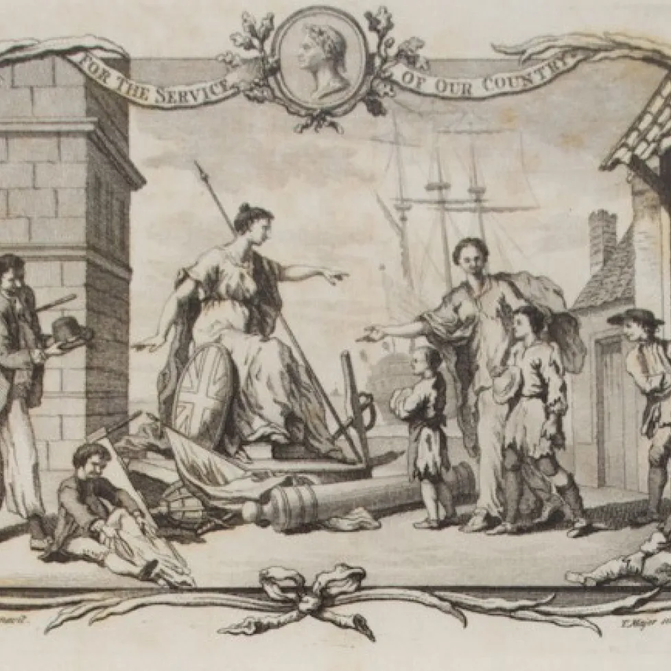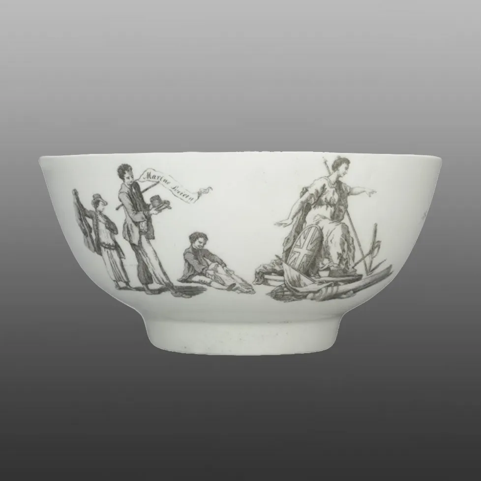 This print of a naval battle is also part of the decoration on the Marine Society bowl.