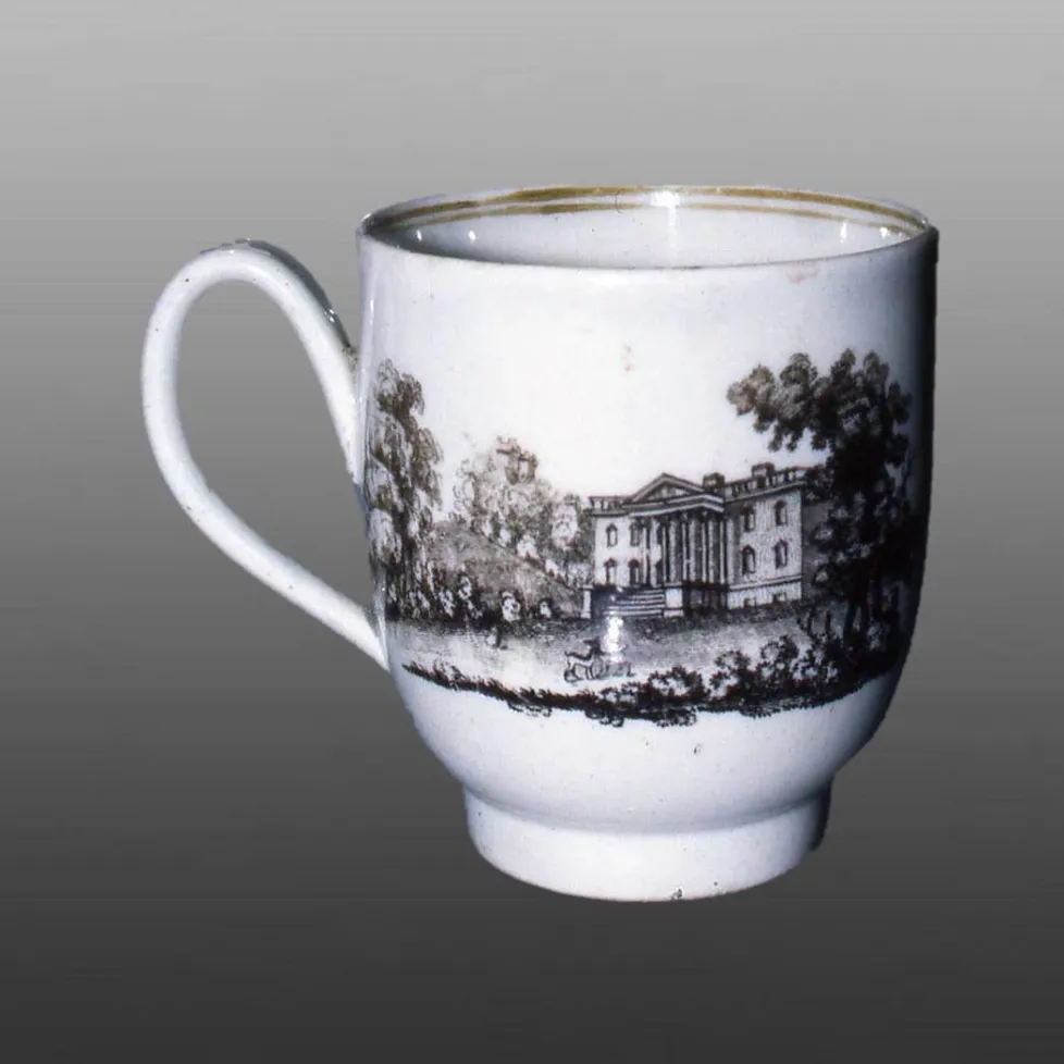 The other side of the coffee cup is printed with a portico-ed country house set in extensive grounds. This appears to be Claremont House.Shape Type