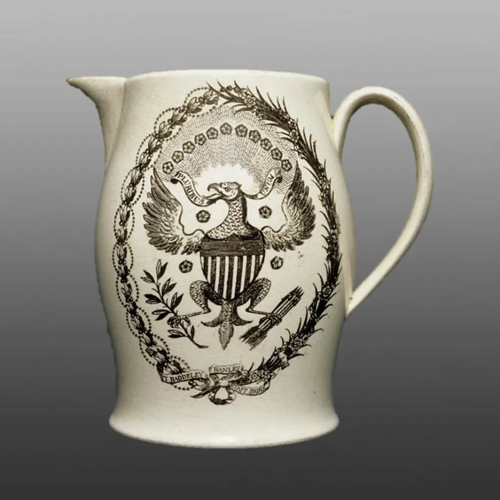 Reverse of jug showing stock print of a sailing ship.Shape Type