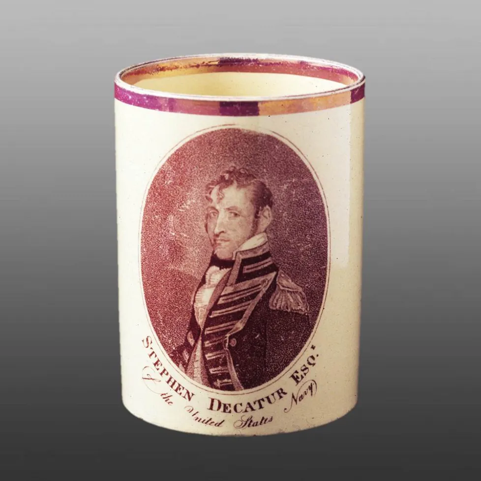 Captain Stephen Decatur was born in Sinnepuxent, Maryland, 5 January 1779. He died at Washington DC, 22 March 1820. Buried in St. Peter's Churchyard, Philadelphia, Pennsylvania.He served as Midshipman on the USS United States, 1798-1799, War with France. Conspicuous for gallantry in War with Tripoli, 1803-1804. Recaptured the USS Philadelphia from