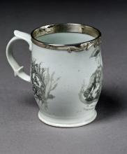 Another view of the mug, showing the typical Longton Hall handle. The mug has been fitted with a silver rim of rococo form.Shape Type