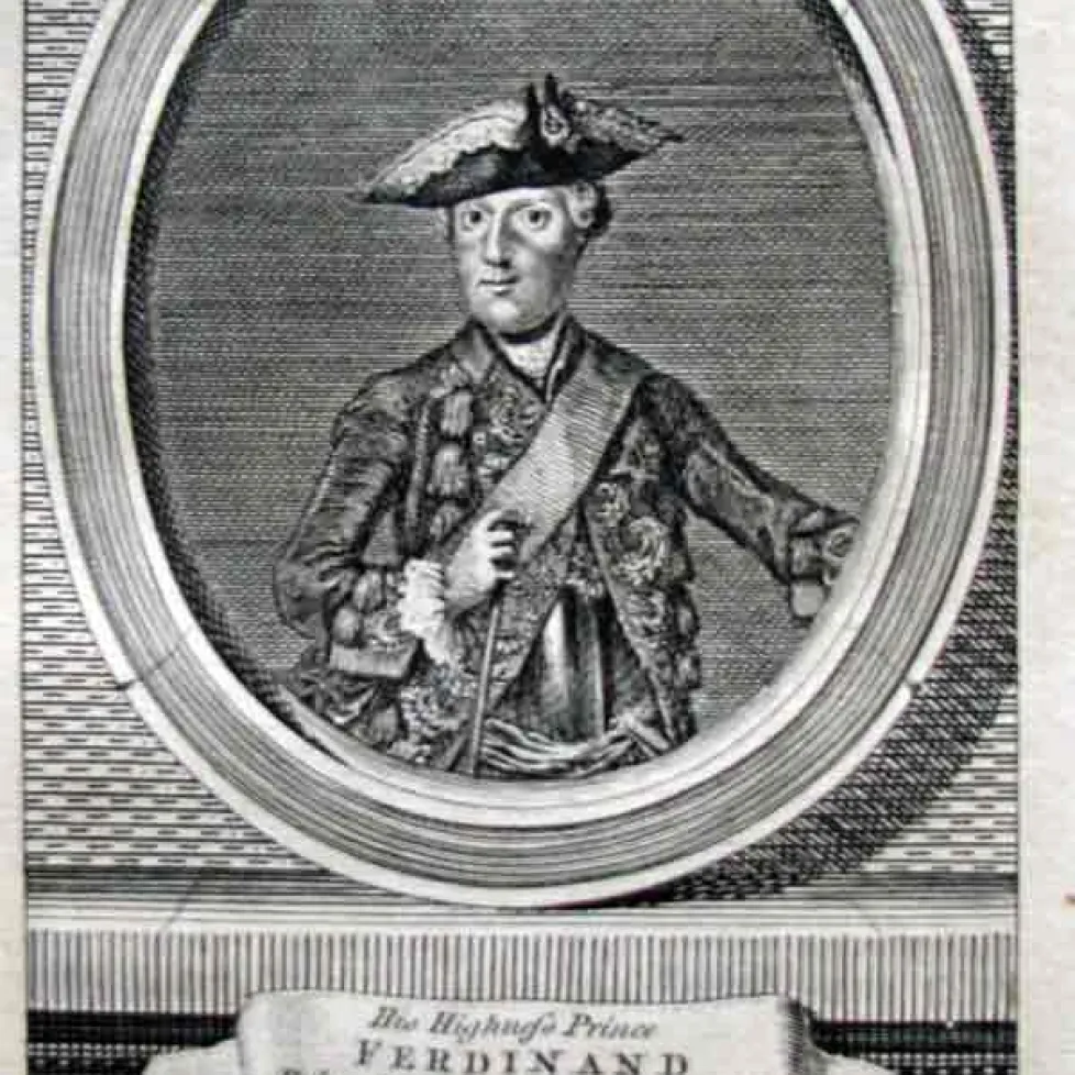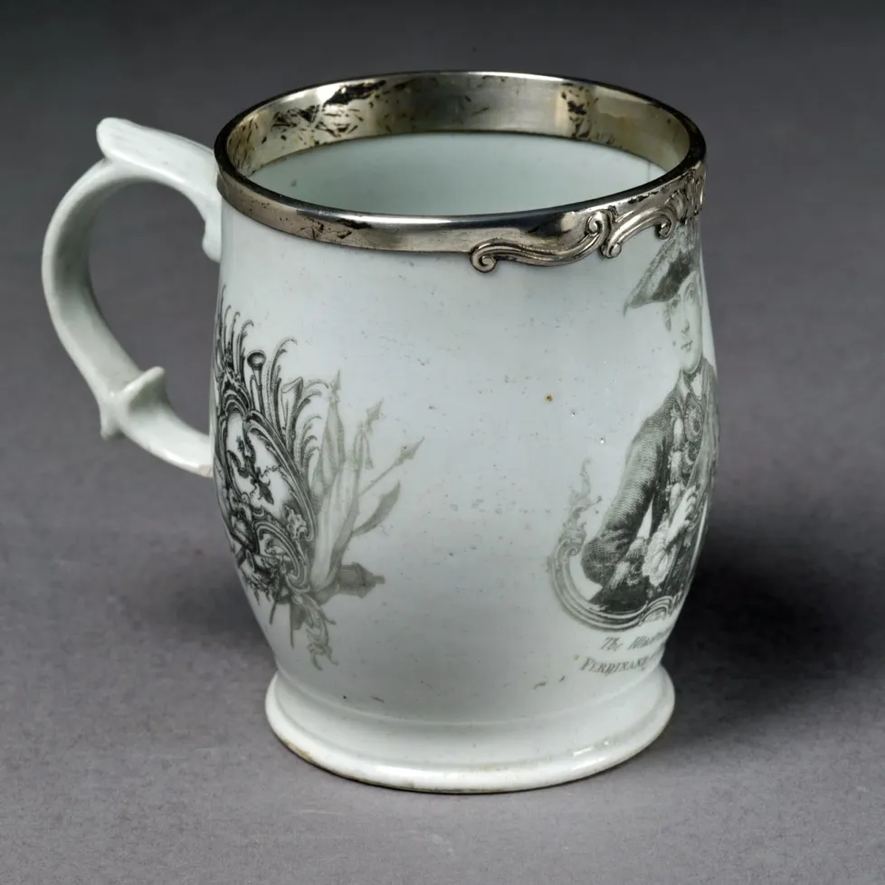 The source of the print of Prince Ferdinand seen on this mug was most likely this engraving, published in the London Magazine in 1758.Additional Image: