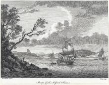 The source of the ship print is a 1788 engraving of Benton Castle, Milford Haven by William Watts after Paul Sandby.Shape Type