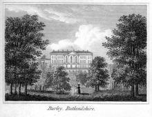 Title: Burley, Rutlandshire Artist: Unknown Engraver / Plate Maker: UnknownThis print appears in Marshall's Select Views in Great Britain. The mansion in the village overlooks Rutland Water. The house was built in the 1690s by the 2nd Earl of Nottingham, who was to a large extent his own architect and