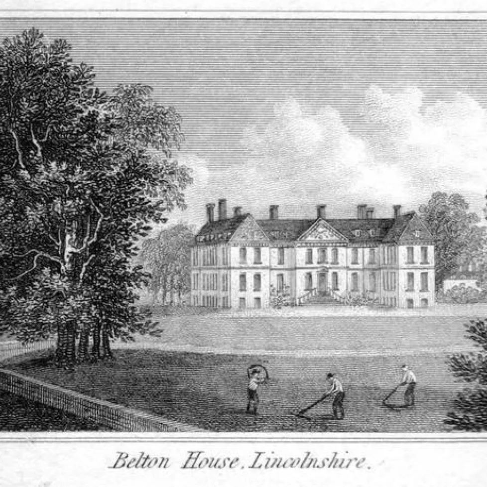 Title: Belton House, Lincolnshire Artist: Unknown Engraver / Plate Maker: UnknownThis print appears in Marshall's Select Views in Great Britain. The village comprises thirty-one predominantly stone-built houses, most standing within a defined Conservation Area, with a further twelve homes outlying the village center. The village is part of the ecclesiastical