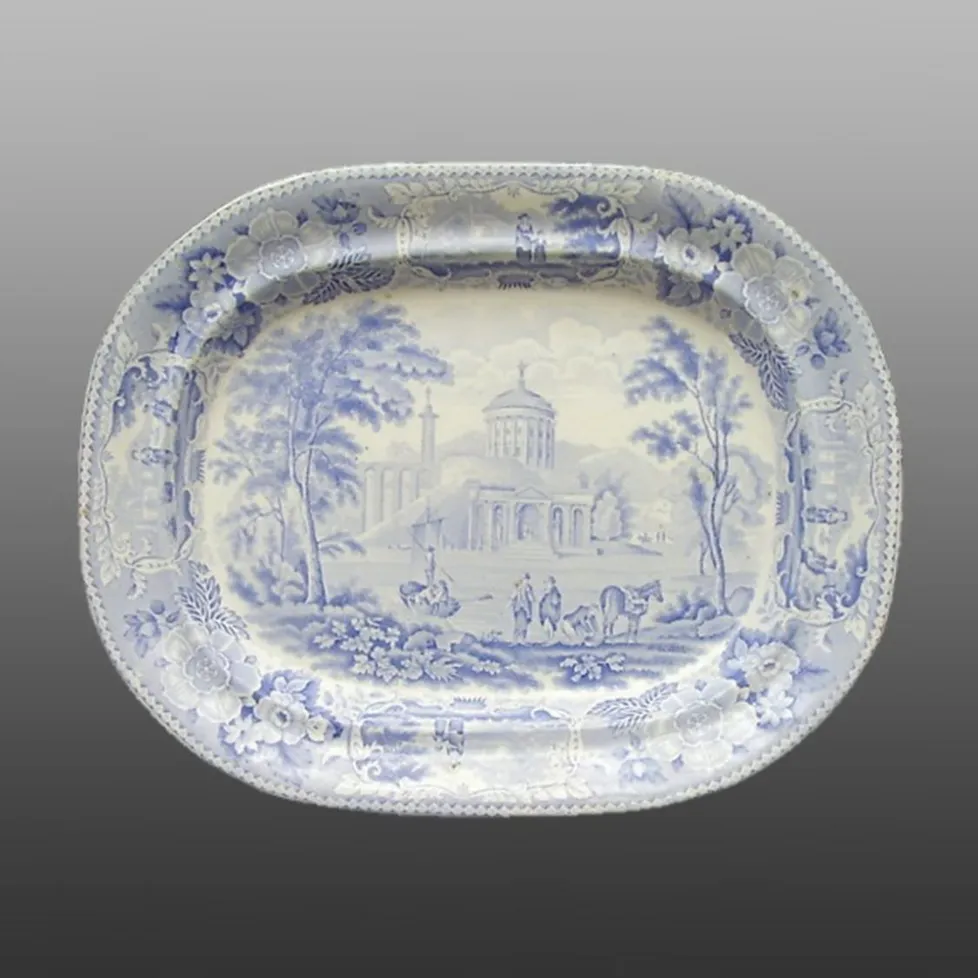 An earthenware platter printed in light blue in the Italian Scenery pattern.BACK TO CATALOG INDEX