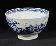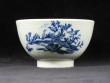 This teabowl printed with The Three Swans pattern decended in the Goulding family, eventually being presented to the Potteries Museum. William Goulding was an original partner in the porcelain factory.