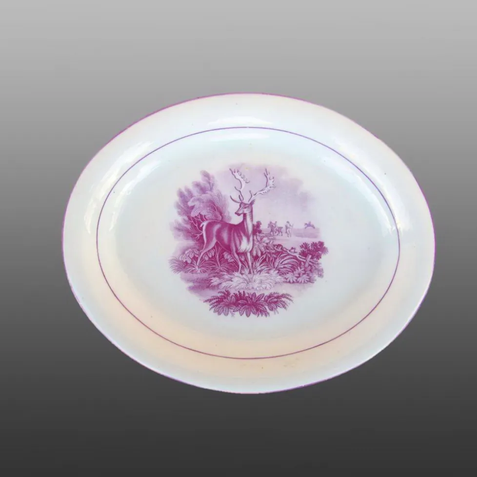 A bone china oval stand or under plate bat printed in purple. The only mark is a hand painted pattern number.BACK TO CATALOG INDEX