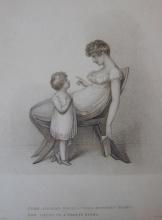 A print entitled "COME, FATHER'S HOPE! - COME, MOTHER'S GLORY! NOW LISTEN TO A PRETTY STORY", engraved by M.N. Bate from a drawing by Adam Buck, published February 1st 1808 by Ackerman's Repository of Arts, London. Courtesy of Ken Bowers.Shape Type
